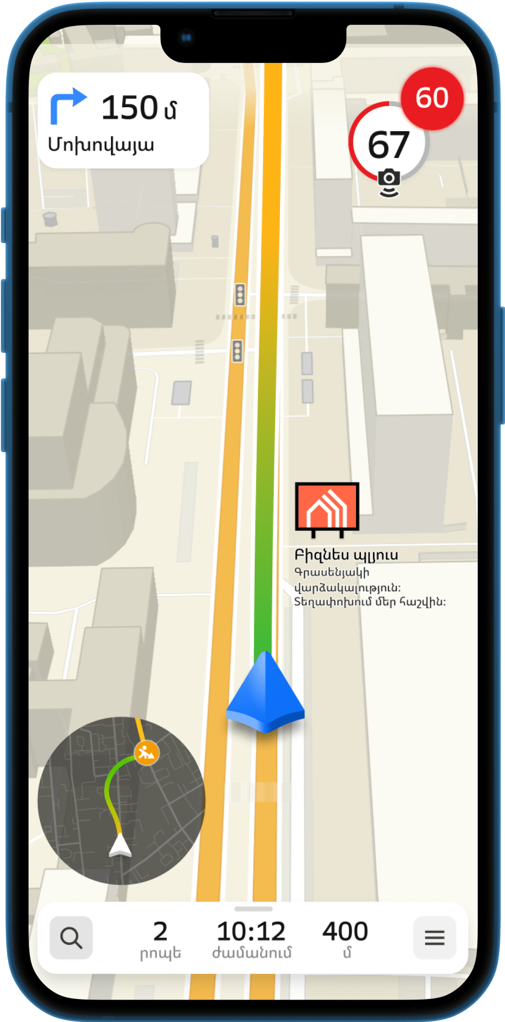 Մեծ գովազդային վահանակը երթուղու վրա գրավում է նավիգատորի օգտատերերի ուշադրությունը։ Դրանով ձեր բրենդը կտեսնեն և կհիշեն։ Սեղմելով բիլբորդին՝ բացվում է բաններ ձեր գովազդային առաջարկով։