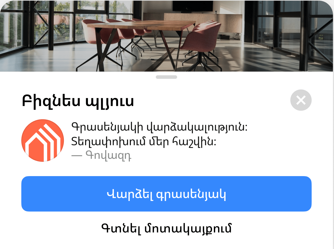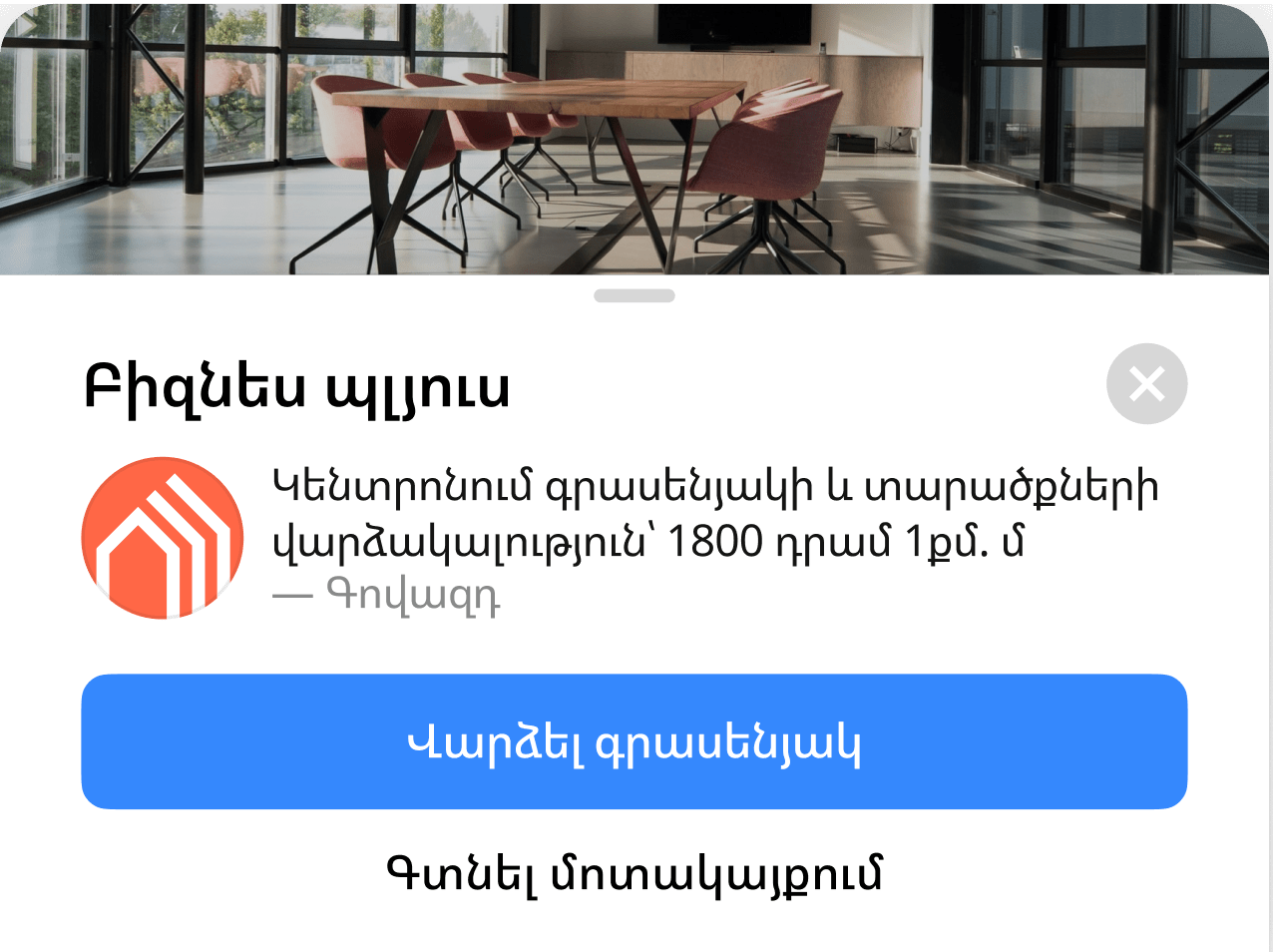 Ավելի շատ ուշադրություն է գրավում, քան քարտեզի վրա նշված կետը։ Սեղմելով լոգոտիպին՝ օգտատերը անցնում է ընկերության էջը։