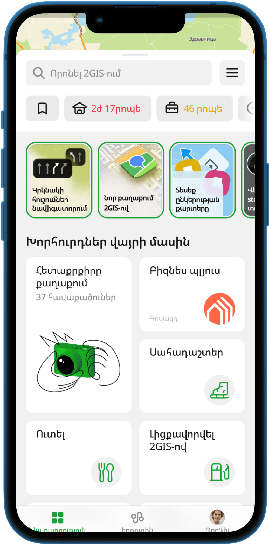 Դաշբորդը և ձեր բանները դրա վրա առաջինն են, որ տեսնում են օգտատերերը 2GIS-ի շարժական հավելվածում։ Բանները գրավում է առավելագույն լայն լսարան։